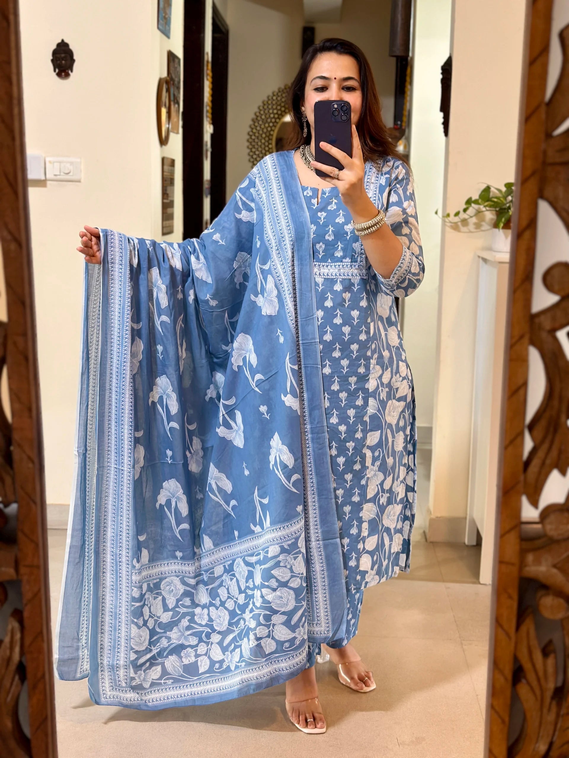 Experience the charm of timeless elegance with our Ice Blue Designer Azrak Cotton Suit. Crafted from premium cotton, it promises all-day comfort while exuding sophistication. The unique azrak design and refreshing blue tone make it a standout choice for any occasion. Add this exquisite piece to your wardrobe today and redefine your fashion statement with effortless style.